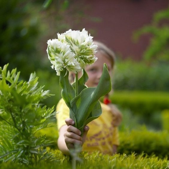 Представляем вашему вниманию тюльпан «Супер Пэррот» — сорт, который поражает своей необычной формой и изысканностью. Этот тюльпан словно прилетел из тропических стран, его крупные цветки с белыми лепестками и зелёными прожилками, а также сильно волнистыми и изрезанными краями напоминают экзотические птичьи перья. «Супер Пэррот» — это выбор для тех, кто ценит оригинальность, стремится создать в саду неповторимую атмосферу и готов удивляться красоте и разнообразию природы.